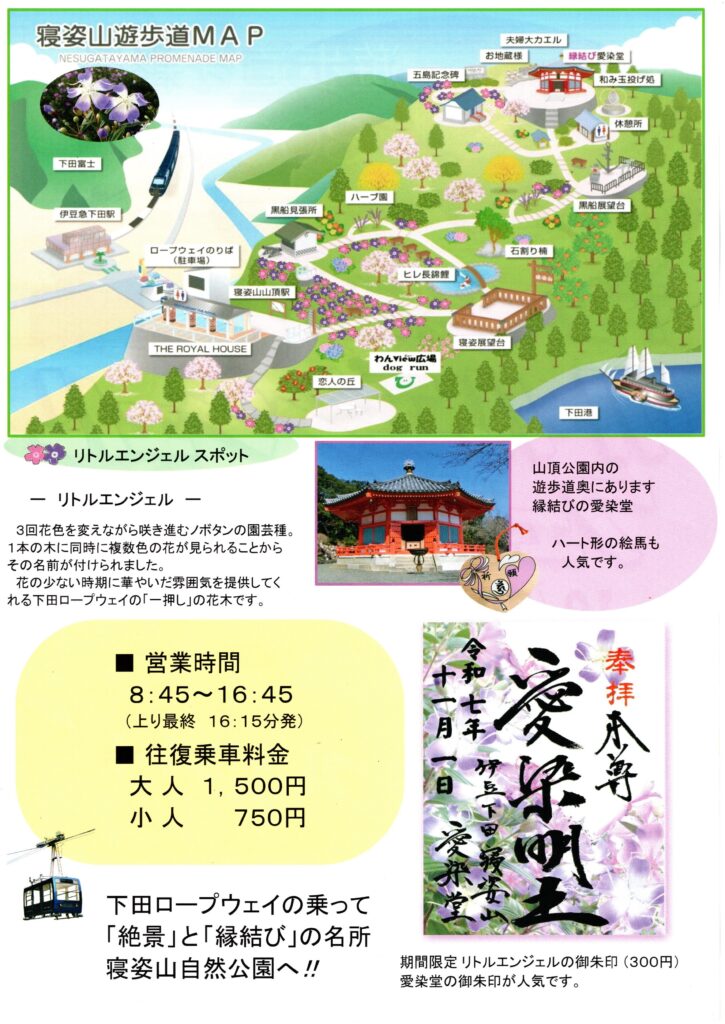 なお、下田ロープウェイの営業時間は、8:45~16:45(上り最終ロープウェイ16:15発)となっております。