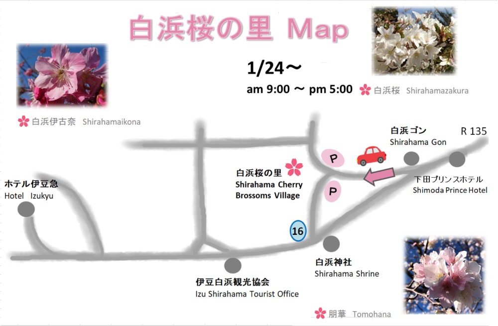 ホテル伊豆急からお車で約3分、徒歩約15分にございます、「白浜桜の里」が今年は1月24日から3月15日まで開園いたします。(すでに内覧を開始していますが、1月23日までの内覧中は徒歩のみで来園ください。)